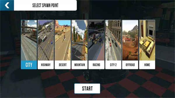 1、点击"Start"按钮即可开始游戏,进入停车挑战或自由驾驶模式;