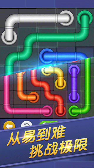 进入关卡后只需要把每一个相同颜色的管道连接在一起就可以获得胜利,在连接管道的过程中不能重叠路线,关卡会慢慢变得越来越难,可以不断的进行闯关来获得经验,在遇到不能通过的关卡时可以在关卡的下方点击提示,提示每天都会有限制的次数,用完了免费的提示还可以通过看广告的方式来获得。