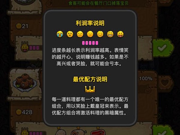 每次出发探险前,记得点击“开始探险”按钮左边的图标,这样可以提前查看图鉴,确认本地图里怪物的组合形状。如果在探险途中忘记了也不要紧,捕捉怪物的时候,点击屏幕右上角的图案就能随时再次查看这只怪物的形状了。餐厅的满意度非常关键,务必保持在60以上!你可以专门做一些美观度高的单一菜品,确保满意度趋势是正向增长的。在满意度趋势为正数的前提下,预估收益自然是越高越好。万一餐厅库存满了该怎么办?这通常有两种情况:一种是你太久没上线,顾客都走光了,这时可以先把锅停了,等一会儿再继续做菜;另一种可能是顾客满意度低于60%,导致菜卖不出去或者卖得特别慢,从而造成库存积压。如果是这种情况,建议只留一个锅做饭团来提升满意度,其他的锅就先拿去升级吧!