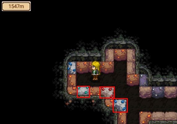 就能看到银矿石了,记住,这玩意儿得用铜镐才能敲得动。