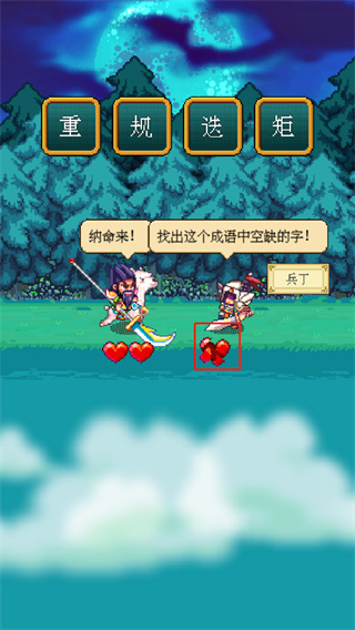 5、游戏的核心玩法始终围绕着成语构建,看准题目给出的提示,从备选字里快速拼出正确的成语,这是你克敌制胜的唯一手段。