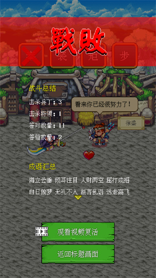 6、当代表生命值的红心全部耗尽时,这局挑战就宣告失败了。不过没关系,你可以选择返回主菜单,随时准备卷土重来。