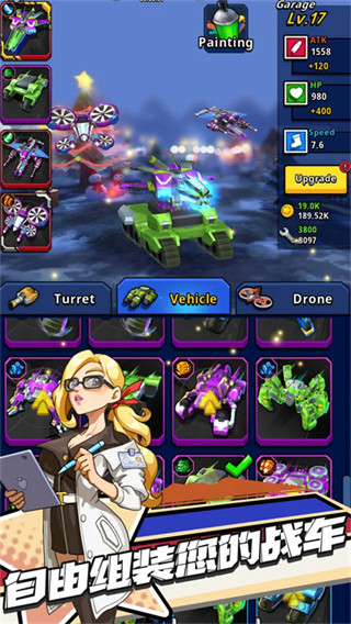 2、多种配件可以去改装自己的坦克,还可以在坦克装上各种武器,打造一个属于自己的坦克;