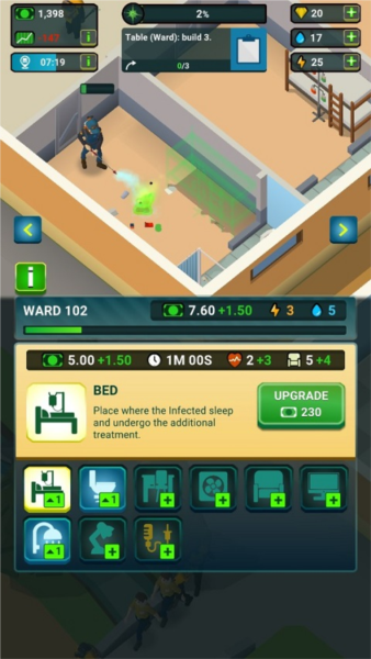 你需要密切关注僵尸病患的身体状况,以防他们突然暴走。记得时常去升级用于研发药品的实验室。保持诊所环境的整洁也至关重要,比如安装效果更好的淋浴设施来改善卫生条件。病毒还会严重影响感染者的精神状态,所以他们也需要娱乐活动来辅助康复。你可以在病房里放上新电视,在院子里添置些长凳,甚至可以买把吉他让大家围着篝火弹唱,这些都能帮助你的病人们克服内心的狂躁。