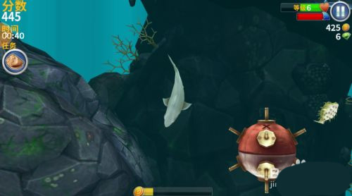 4、游戏内有超过50个任务等你完成,还可以寻找隐藏的宝物来获得金币与宝石,用它们来升级你的鲨鱼或购买特殊的救生道具。