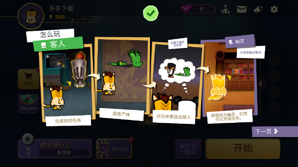 作为一名宾客,你的职责是努力完成地图上的任务。当你发现倒下的同伴时,要第一时间拉响警报召集大家。在讨论环节中,你需要根据线索和判断,投票选出你心目中的嫌疑人(当然,如果线索不足,也可以选择弃票)。即使不幸被淘汰变成了幽灵,你依然可以通过完成任务来为团队的胜利做出贡献。