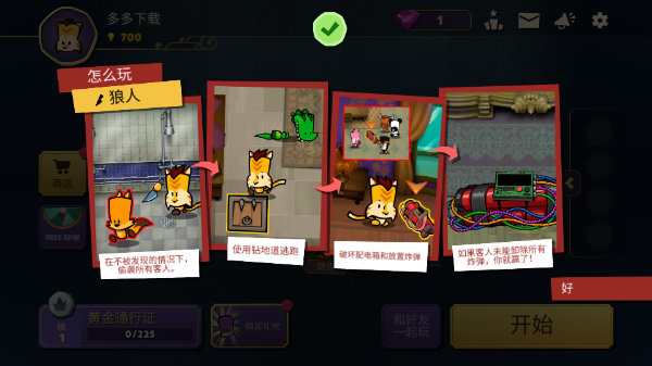 如果你是那个伪装者,你的目标就是在不暴露自己的前提下,悄无声息地淘汰掉所有宾客。你可以利用地图上的管道进行快速移动和躲藏,还可以通过破坏电力设备或安放炸弹来制造混乱。如果宾客们没能在限定时间内解除你设置的所有危机,那么胜利就属于你了!