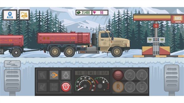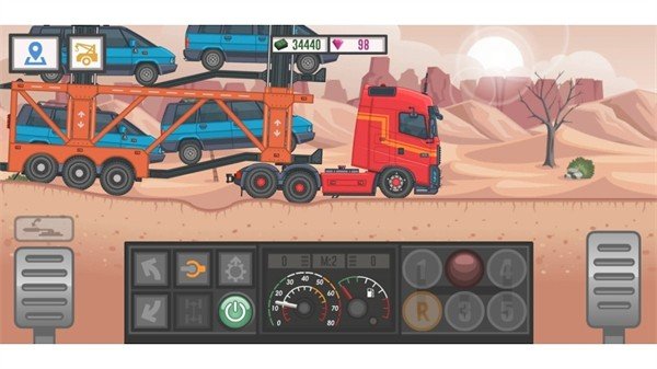 1、游戏的操作界面采用了经典的2D横版卷轴模式,这种设计大大降低了上手的门槛,无论是新手还是老玩家都能快速掌握驾驶技巧,让整个过程变得轻松又直观。