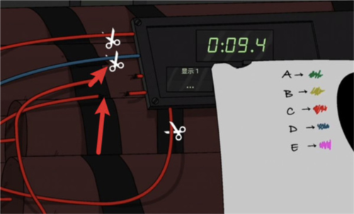 4、一旦这三根线被成功剪断,屏幕上的倒计时便会立即静止,这代表着你已经化解危机,顺利完成了拆弹任务。