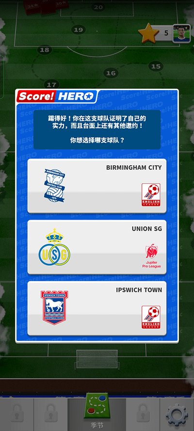 刚下载下来玩了一下午,这玩意儿就是那个Score Hero 2的中文版。讲真,这游戏的套路老玩家都懂,你开局就是个无名小卒,但天赋异禀那种。通过各种训练和比赛,踢出点名堂后,就会有俱乐部来挖你。玩法上,它不是那种让你满场跑的实况足球,更像是个解谜游戏,一关一关地过。每一场比赛,你都得看准时机和角度,规划好路线一脚定江山,瞎踢可赢不了。