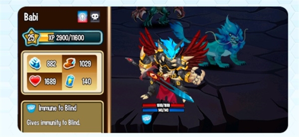 7.在战斗中,只要轻轻点击任意一只怪兽,就可以查看它的详细信息,包括当前承受的状态效果和自身特性都会显示出来。