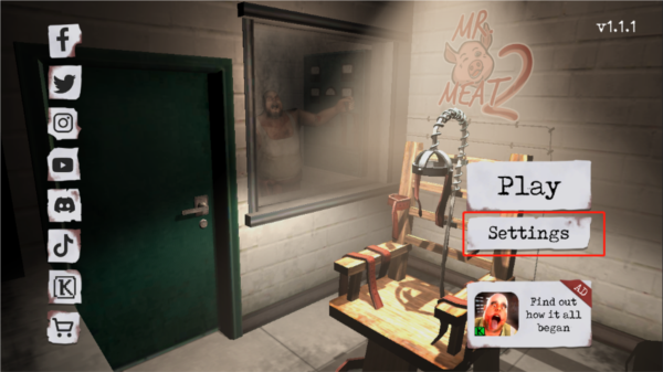 1、首先打开屠夫先生2,在游戏的主菜单界面上,找到并点击右下角的【settings】(设置)按钮。