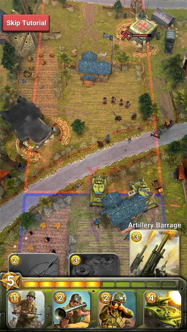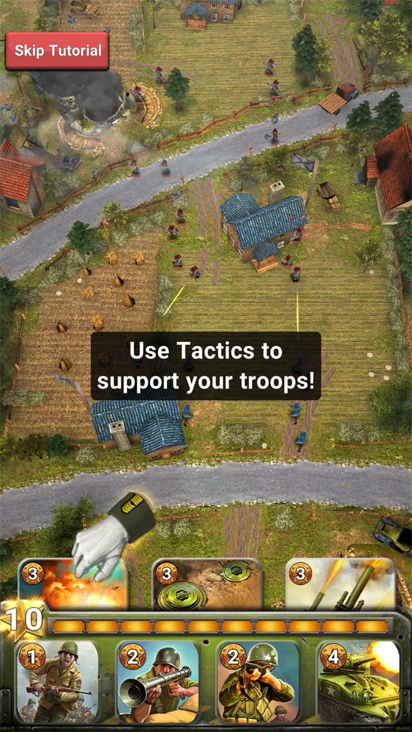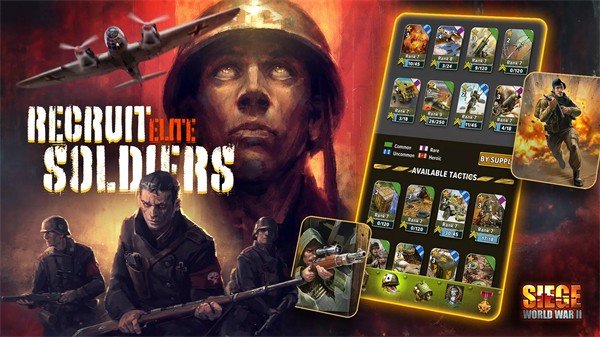 不断收集和升级形形色色的卡牌,构筑一套属于你自己的攻防战术体系。游戏里包含了大量极具特色的作战单位,比如还原了二战历史的步枪兵、狙击手、空降兵和反坦克炮兵等步兵单位。你还能调动强大的坦克部队,并灵活运用空袭、地雷阵、物资空投、炮火支援等多种战术,对战场进行全方位的立体控制。