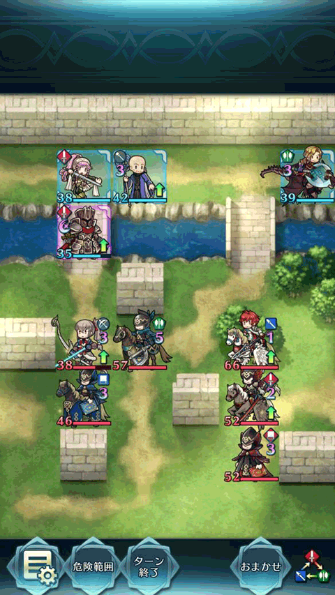 3、第三回合:纳西恩的恐慌效果成功触发后,向左移动两个格子。这个位置会让敌方的日乃香正好攻击并被他消灭。接着,里夫先后为小黑和纳西恩进行治疗,确保状态健康的小黑能够稳稳接下敌方倭刀月虹飞马的攻击。