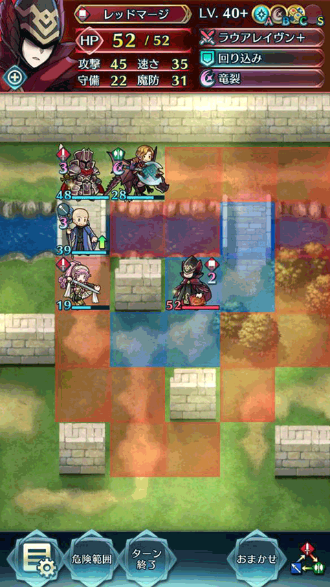 1、第一回合:首先操作纳西恩飞到地图的角落里,吸引敌方单位的火力。其他三名角色则按照图中所示的位置站好。这样布局后,敌方的骑马法师会被带有增益的小黑直接反击消灭,而拓海会第一个开始行动。