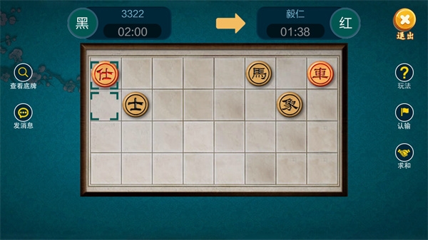 4、在界面的右侧,设有“玩法”、“认输”和“求和”等选项。如果你对规则不太熟悉,可以随时点开玩法说明查看;如果感觉局势无望,也可以选择认输或向对手提出和棋。
