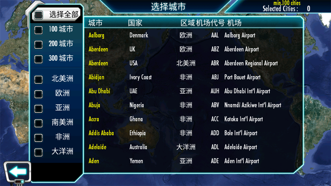 4、选择一个你心仪的城市作为你航空事业的起点,全世界的著名城市都在地图上等着你。