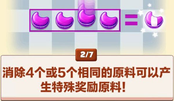 (2)一次性消除4个相同的饼干,会生成一个带有特殊效果的奖励道具哦!