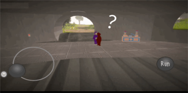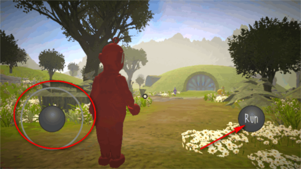 2、如果你想让角色跑起来,可以先按住屏幕上的“run”按钮,然后再推动摇杆行走,角色就会进入奔跑状态。
