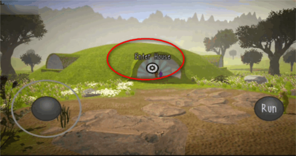 3、走到门前时,屏幕上会出现交互提示,点击一下就能进入房间。