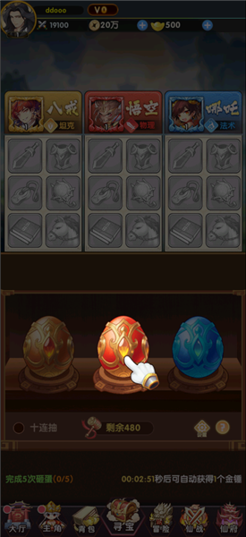 3、在这里,你需要通过点击屏幕上的蛋来获得你的第一批基础装备。