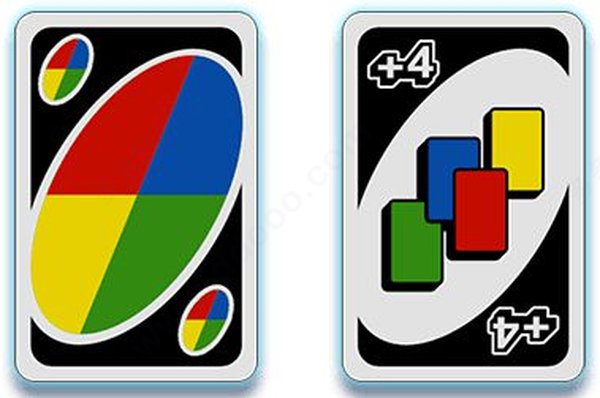 万能牌分为“变色牌”(可以改变当前的牌面颜色)和“变色加4牌”(在变色的同时让下家摸4张牌)。这两种牌在任何时候都可以打出,并且能够指定下家需要跟牌的颜色。这两种万能牌各有4张。