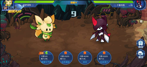 接下来是第二关:“实验精灵”。这一关的难度就上来了,需要我们依次战胜塔西亚融合出的四只精灵。要留意的是,每天只有三次挑战的机会,需要好好把握。