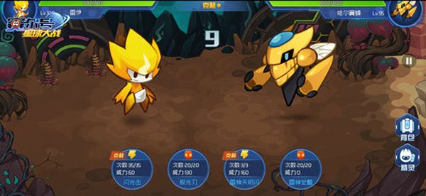 第一只对手是哈尔翼蜂,难度不高,用属性克制的精灵去打,可以轻松搞定。