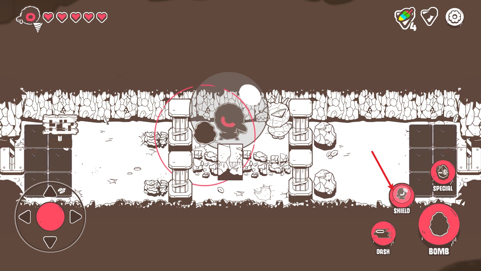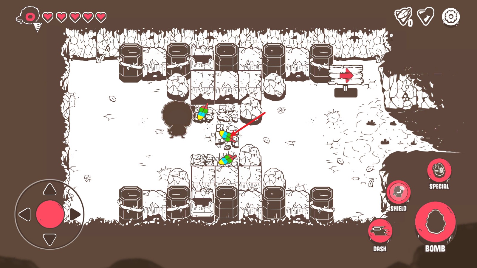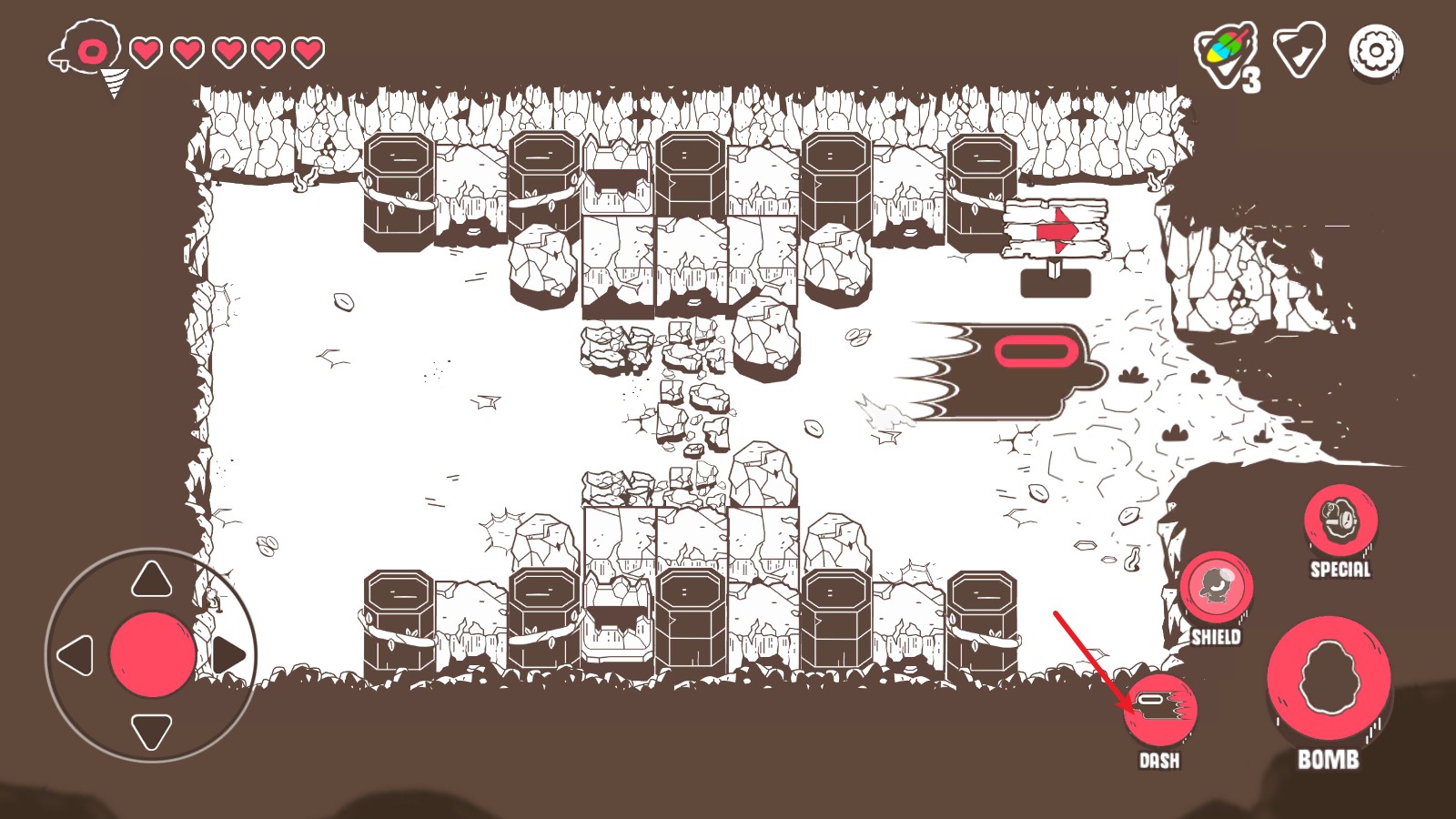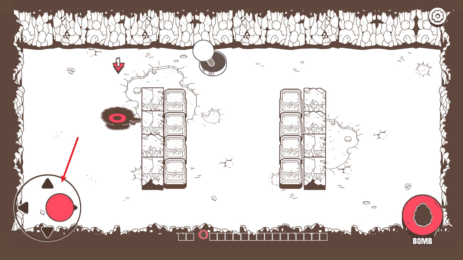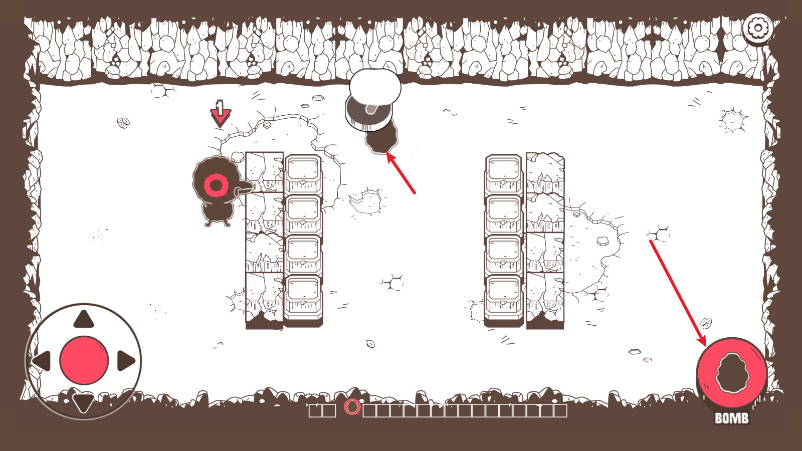 4、当你移动到想要攻击的目标附近,或者需要炸开障碍物时,只要轻轻点击屏幕右侧的功能按钮,就可以在当前位置安放一颗炸弹。