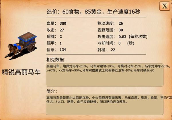 - 强项所在:他们的马车兵战斗力非常强悍,但缺点是移动速度慢,容易被敌人偷袭后方。