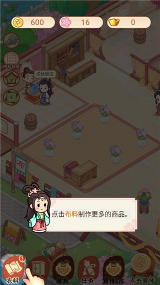 4、逐步升级:通过不断收集和销售布料来积累资本,玩家可以一步步升级自己的布庄,从而解锁更多的资源与功能,让经营效率更上一层楼。