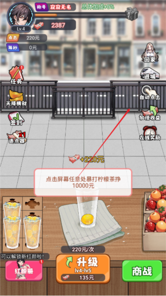 游戏最核心的魅力,就是让你亲身体验从一个一无所有的穷小子,逆袭成为城市首富的完整旅程。你的起点就是街头一个卖“暴打柠檬茶”的小摊,需要通过自己的努力不断积累财富,最终实现身份的华丽转变。这个过程充满了挑战,你需要结合精明的经营策略和对市场的敏锐洞察,为自己的每一步发展规划好方向。如何定价,何时扩张,投资哪个行业,这些都需要你深思熟虑,稳扎稳打地朝着财富的顶峰前进。