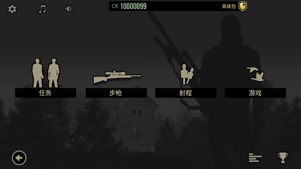 3、全部调整完毕后,回到游戏主界面,点击“继续”按钮,就能看到任务、步枪、射程和游戏等几个主要的功能选项了。
