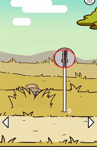 5、到第二个场景,点那个禁止通行的牌子,后面藏着一把夹子。然后你回到第一个场景,用这把夹子从火堆里把吃的夹出来,吃掉就过关。看,就这么简单。