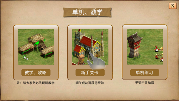 1、启动《指尖帝国》单机版后,如果对玩法不太熟悉,建议先进入新手教学环节,点击屏幕上的“单机教学”选项。