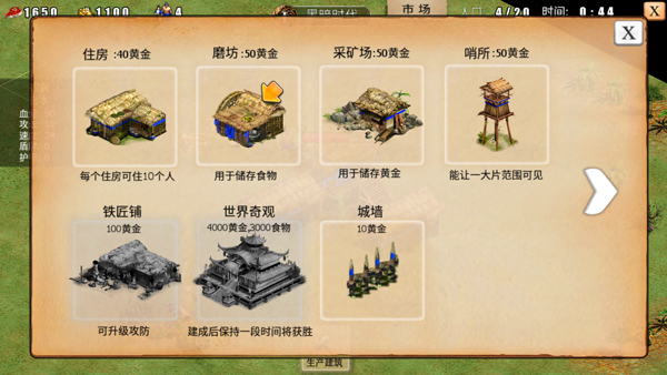 这个模式和常局一样,都是从最初的黑暗时代开始,需要通过升级来解锁更高级的科技和兵种。但最大的区别在于,开局就会给你海量的资源,让你省去漫长的发展阶段,可以直接专注于战斗和时代升级。