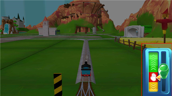 1、游戏下载好之后,想让火车跑起来,只需要点一下屏幕右边的油门踏板,就能轻松提速啦。