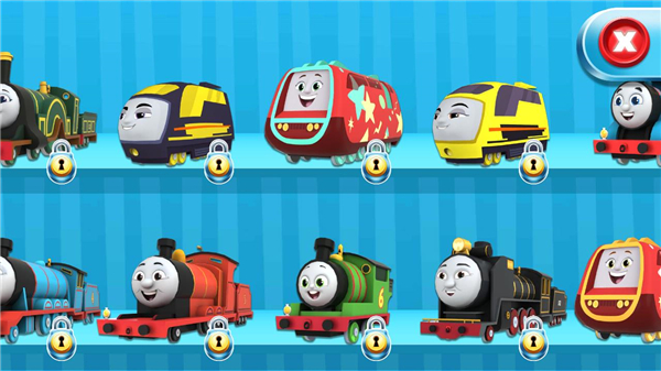 7、游戏里还有好多不同样子的托马斯火车头等着你来解锁。换上新车头不仅外观变了,能拉的货物类型和数量也会不一样哦。
