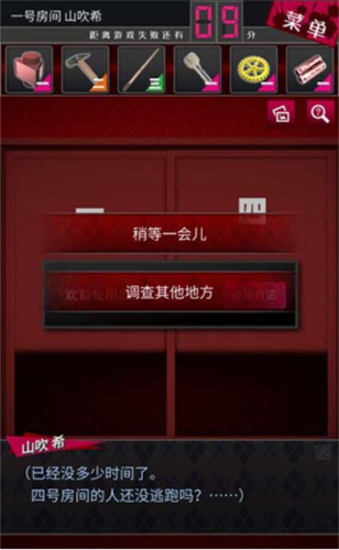 6、最后一步,把之前借来的道具都还给对应的房间,记得选“稍等一会儿”。等所有人都安全撤离后,用你手里的钥匙开门走人。