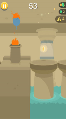 这个模式就更直接了,玩法简单粗暴。你只要控制豆子一直往上弹就行,别撞到天上的鸟,也别掉到黄色的岩浆里。弹的时候多往宝箱和金币上踩,能让你更快发家致富。