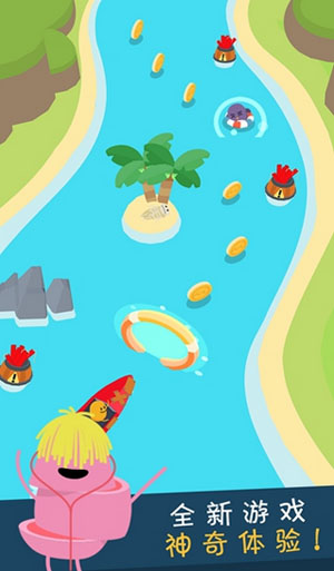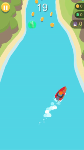 用摇杆控制一艘小破船,一路收金币、钻石和其他道具。核心就是别撞上任何东西,不然直接GG。