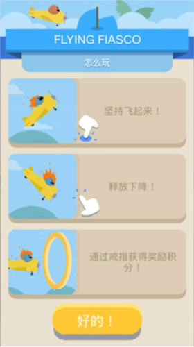按住屏幕就往上飞,松手就下坠,目标是穿过圆环拿奖励分。手感需要适应一下。