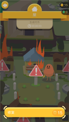 2、房子一开始可能是破的,需要用你闯关赚来的金币去修复它们。