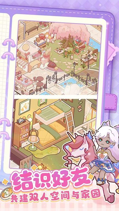 3、温馨家园:游戏会为你提供一栋附带花园的可爱小屋,这片完全属于你的空间可以任由你来设计和布置,随心所欲地把它变成你梦想中的样子。