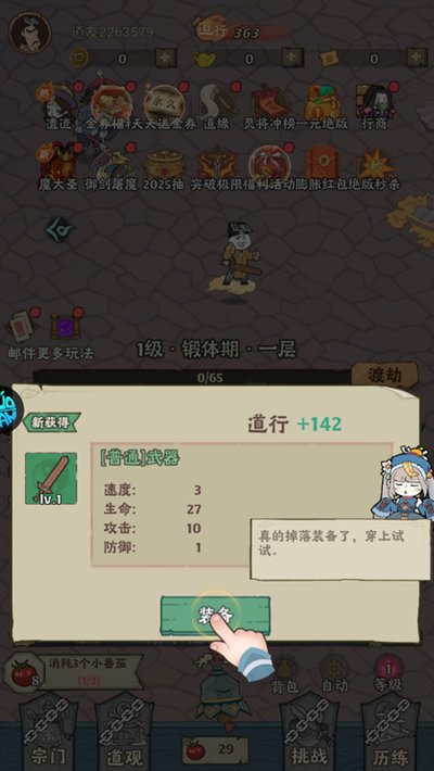 3、在与妖魔鬼怪的战斗过程中,你会不断获得各种装备掉落,穿上它们可以直接增强角色的战斗力。