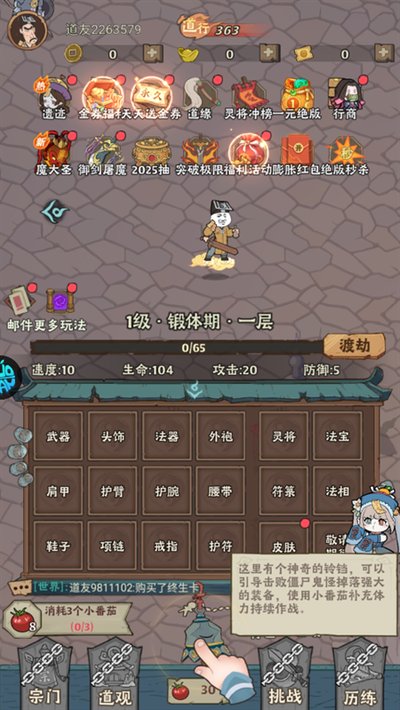 2、游戏的整体节奏偏向休闲,不强制玩家投入大量时间。设计的重点在于策略搭配和有趣的社交互动。你每天只需要花一点点时间,就能打理好自己的洞府,培养手下的灵将,享受一种悠闲自在的修仙生活。