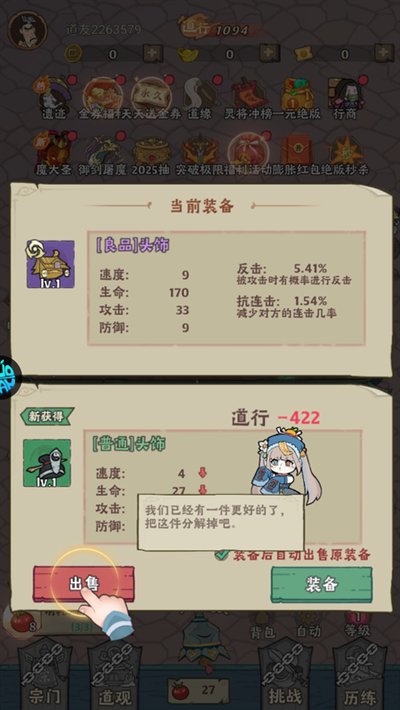 4、至于那些品质较低或者用不上的装备,系统提供了一键出售功能,可以方便地清理背包,非常省心。