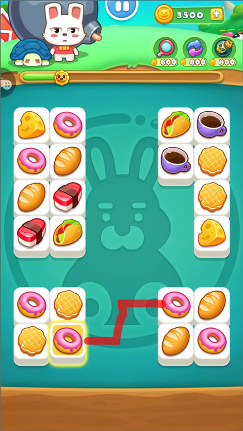 4、在正式开始游戏前,系统会有一个简单的引导,帮助你快速熟悉基本的游戏规则。掌握之后就可以大展身手了,你的任务是在纷繁的图案中找出两个相同的物品,并通过线条将它们连接起来进行消除。记住,连接的线条最多只能有两个拐角,也就是不能超过三次转弯。