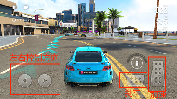 4、游戏里的基本操作都在屏幕上有清晰的标识,油门、刹车、方向,一目了然;