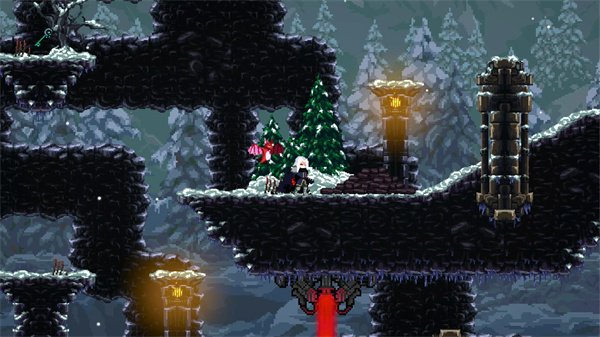 整个游戏画面是由美术师一格一格精心绘制出来的像素艺术品。它并非简单地套用一层模糊的复古滤镜,而是追求极致的细节表现,无论是砖墙的斑驳纹理,树叶在风中的摇曳,还是光线穿过缝隙的层次感,都刻画得清晰可见。那种标志性的暗黑风格,从画面的每一个角落渗透出来——古老废墟中升腾的余烟,地牢深处闪烁的诡异绿光,以及头顶那片永远阴沉的灰色天空。这种复古的美学与现代的精细度相结合,让你第一眼就能感受到这个世界的压抑与危险。